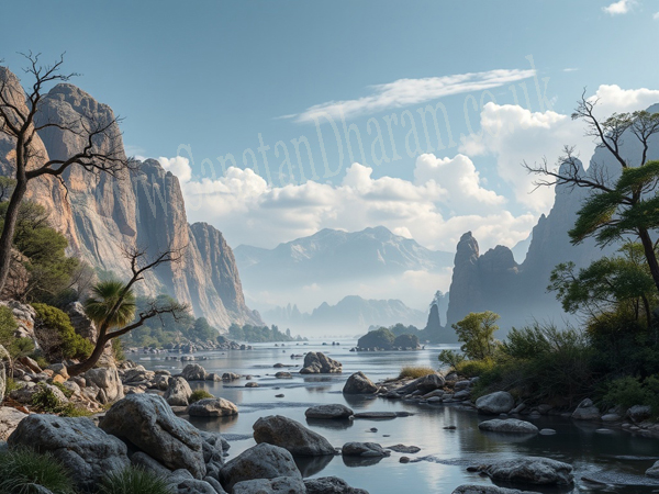 This matches the Rigvedic description of a river that "flows from the mountain to the sea" with "full majesty".
